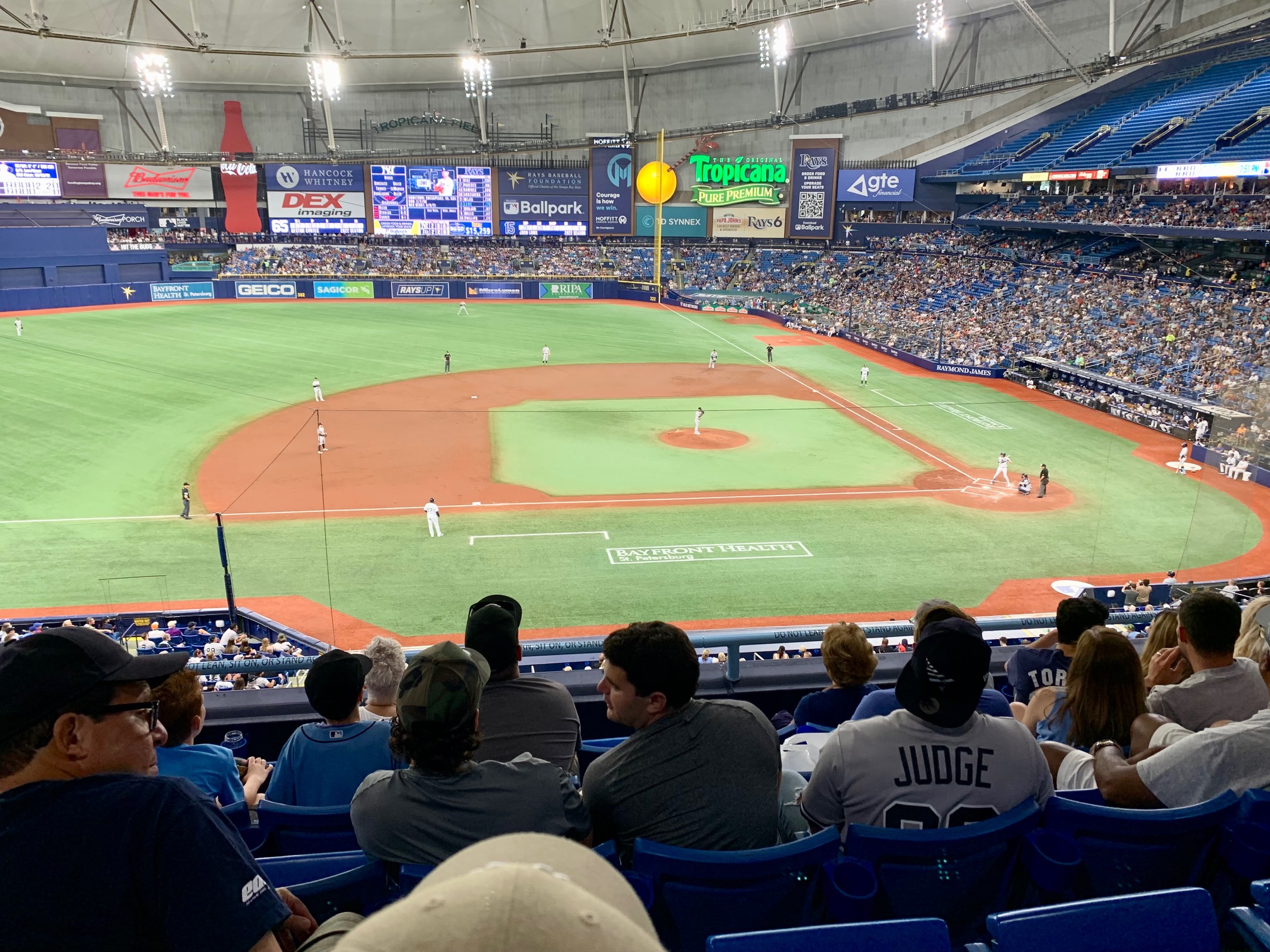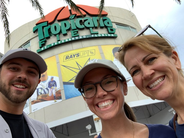 [June 22] We spent the morning at our apartment so that Bobby could work a few things out for his new assignment coming up. Then we all went to the Lady and the Mug coffee shop for cappuccinos and croissants. After that we walked across the street to the Henry B. Plant Museum that is inside one of the University of Tampa buildings. The building itself is super fun looking, sort of like the Willy Wonka Factory. My mom had pointed out that each room contained proper etiquette rules in different places which had us laughing. Then we went for lunch at the Oxford Exchange. This place is a definite MUST if you are ever in the Tampa area. The Oxford Exchange is a sophisticated European styled bookstore, restaurant, coffeehouse, and shop all in one, but in their own designated spaces! Then we checked out the St. Pete Pier. We can’t believe we missed this part of St. Petersburg the last time we were down here. It has an awesome playground, hang out areas, docks, and a restaurant on the water only accessible by walking or taking their extended golf cart shuttle. Then we left for Tropicana Field to finish out the three game series between the Yankees and the Rays. This was an incredible game to be at. AND if you listen back to the end of the game interview with Jose Trevino…you can totally hear us and our section cheering for him!
