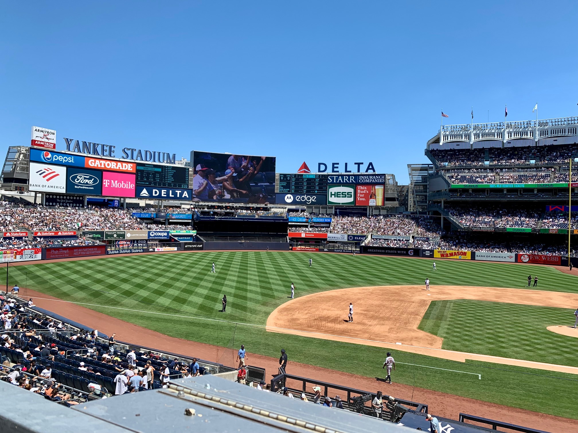 [June 23] Travel Day! It was the best feeling in the world for us to be going back to Long Island after so many months away! Bobby and I were so glad that we got the last two out of three seats available on the same flight as my mom back to LaGuardia Airport. While we were in the airport, Bobby started looking at Yankee tickets for June 25th’s game. The tickets were an unbelievable deal for field level at Yankee Stadium, so he got them!